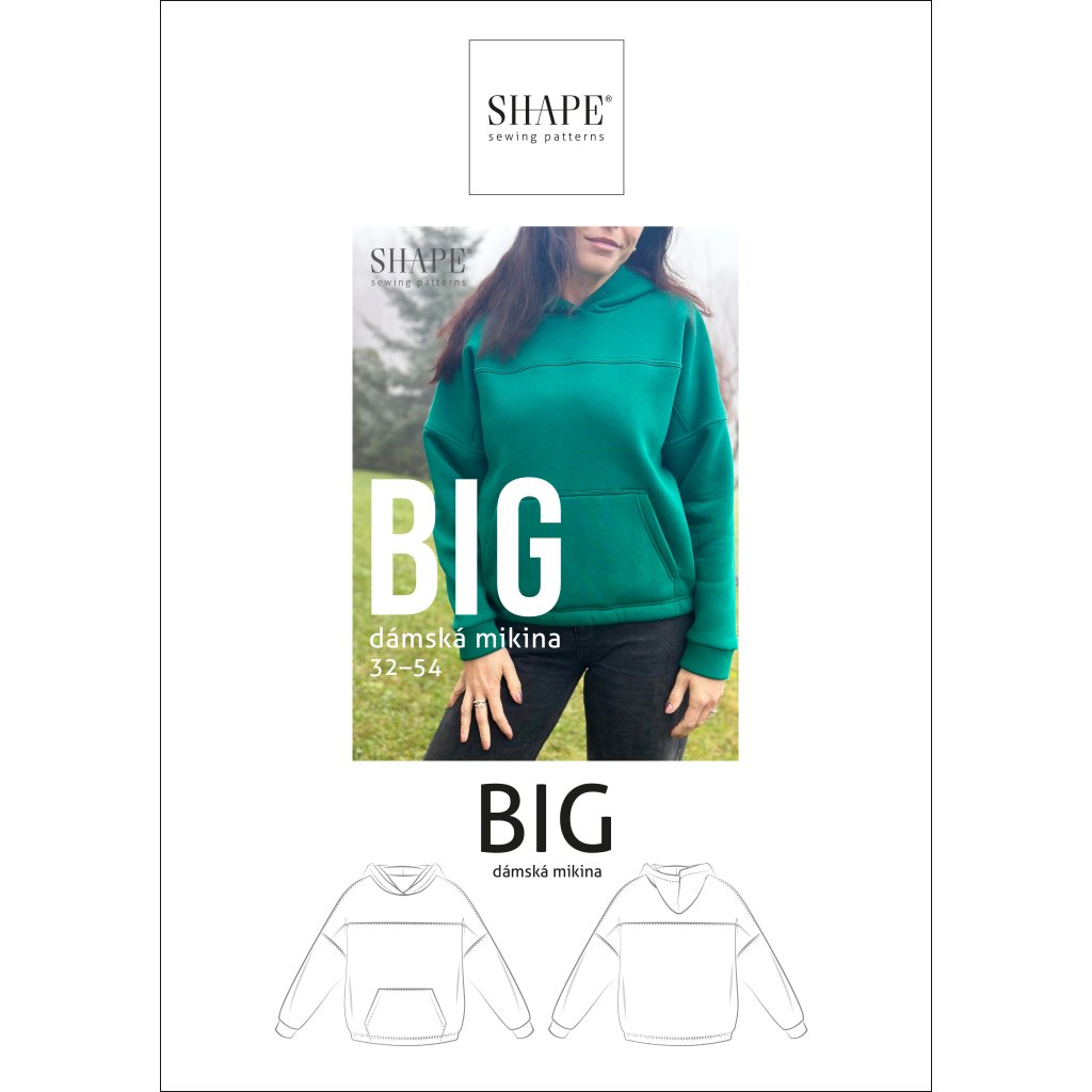 Trendy střih na oversize mikinu BIG s efektním členěním na PD a ZD. Díky volnému střihu je mikina opravdu pohodlná. Ideální materiálem na šití budou všechny elastické počesané teplákoviny, díky kterým bude mikina skvěle nadýchaná. Mikina má v dolním kraji gumu, na PD nakládanou kapsu, kapuce je dvojitá, aby pěkně držela tvar.