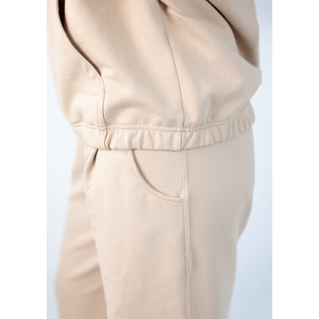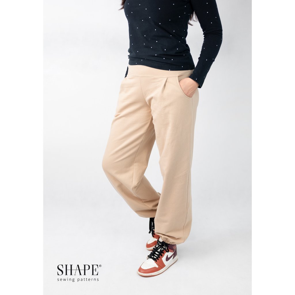 Tepláky s extra širokými nohavicemi jsou aktuálním hitem. Aby střih nebyl jen beztvarý pytel, tak v oblasti pasu jsou tepláky klasické šířky a až teprve od sedla, které je na PD i ZD, se tepláky výrazně rozšiřují, takže střih vytváří pěknou dámskou siluetu. Tepláky mají kapsy, dolní kraje nohavic jsou stažené do gumy, ale klidně by šlo nechat i jako volné, hladké nohavice.