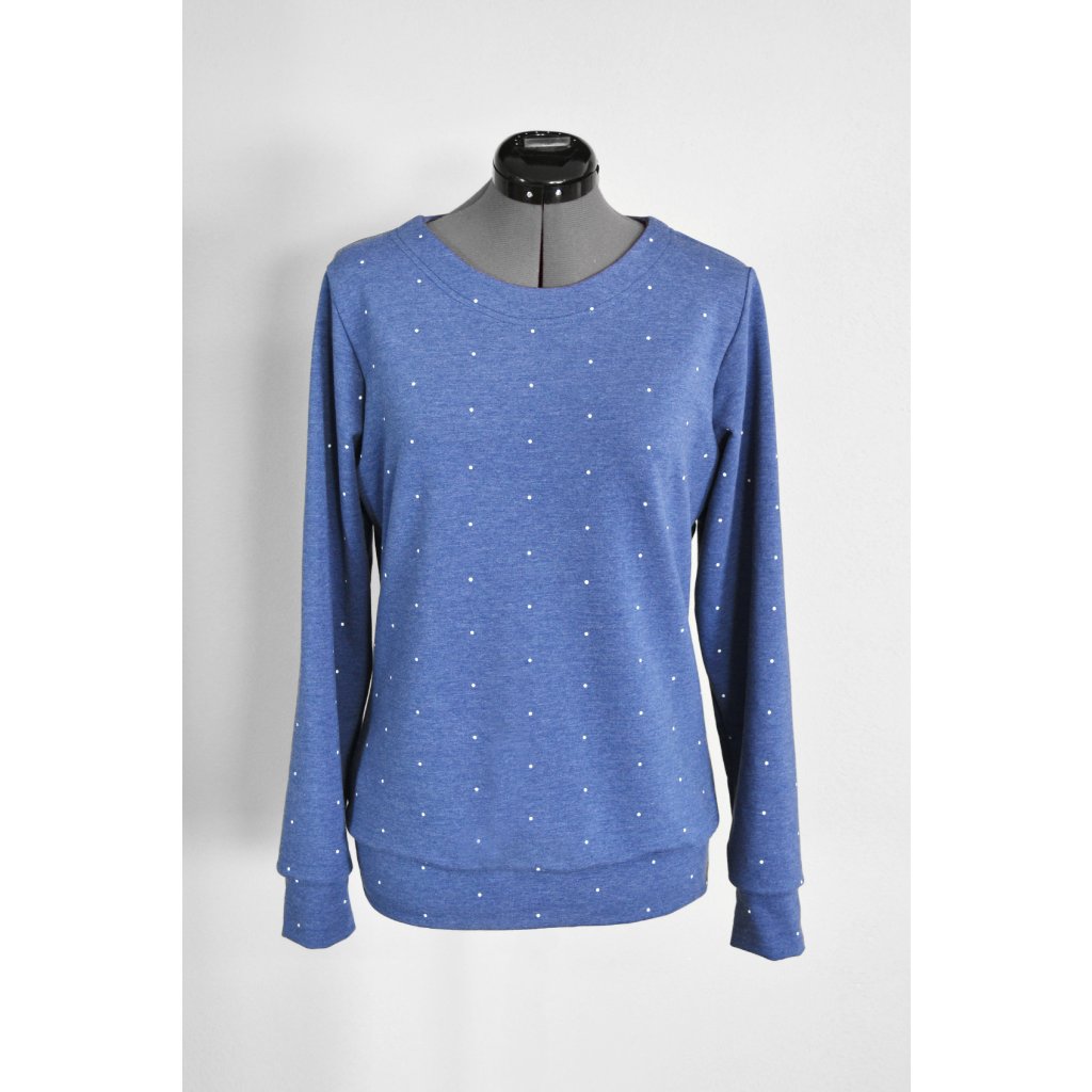Mikina je celopropínací na zip (zapravená pomocí podsádek). V průkrčníku a dolním kraji je všit náplet. Na předním díle jsou lištové kapsy.