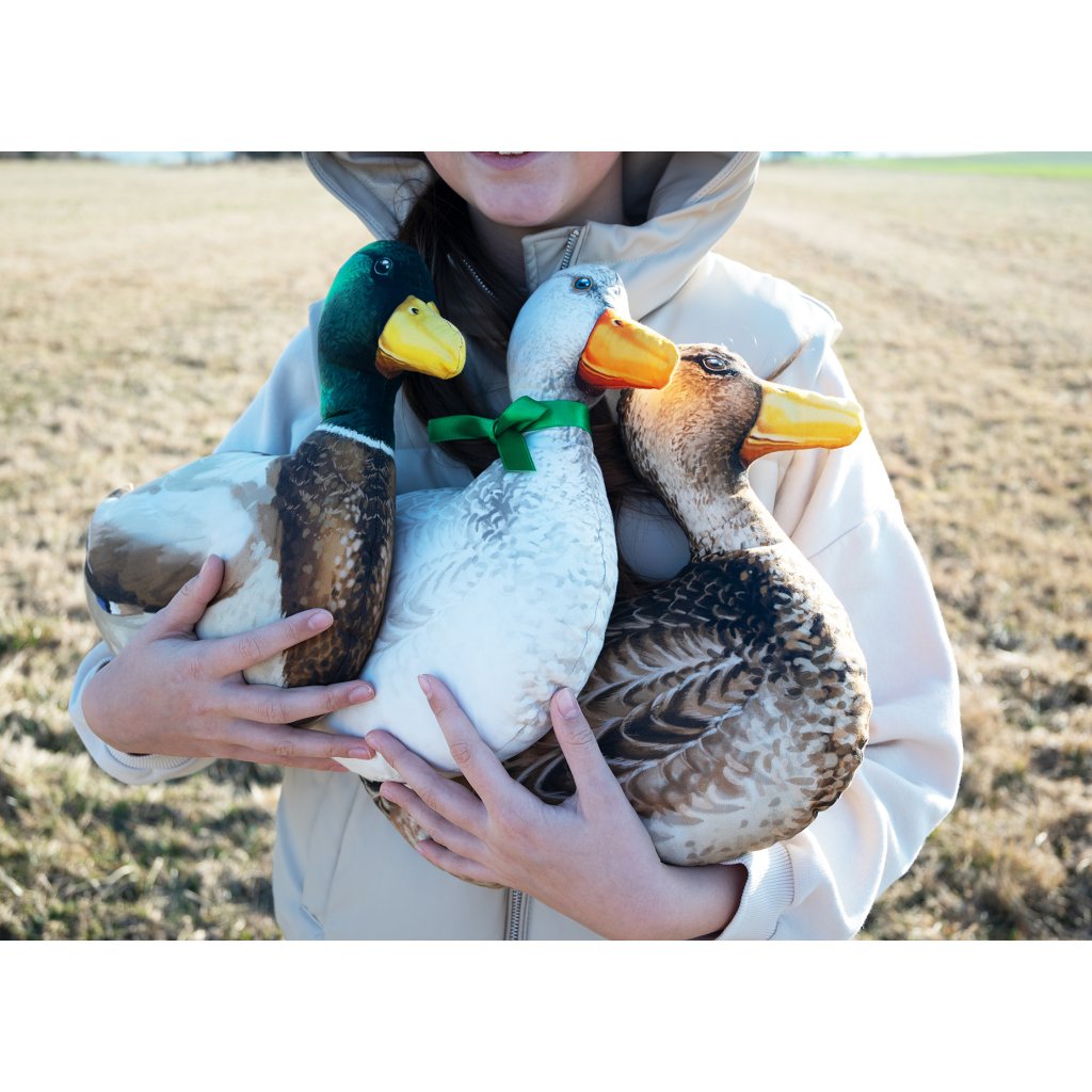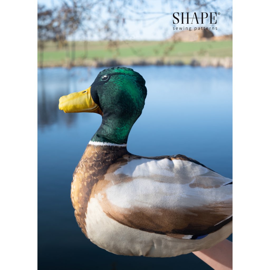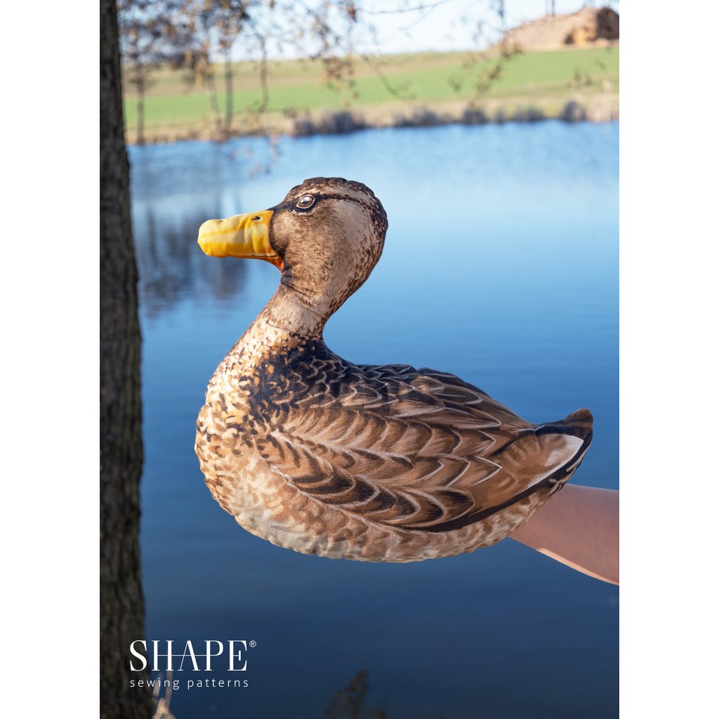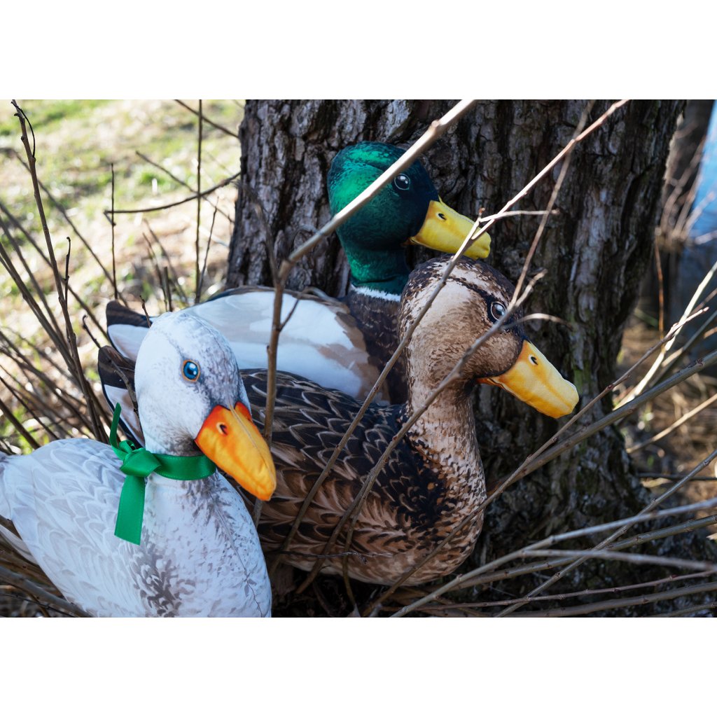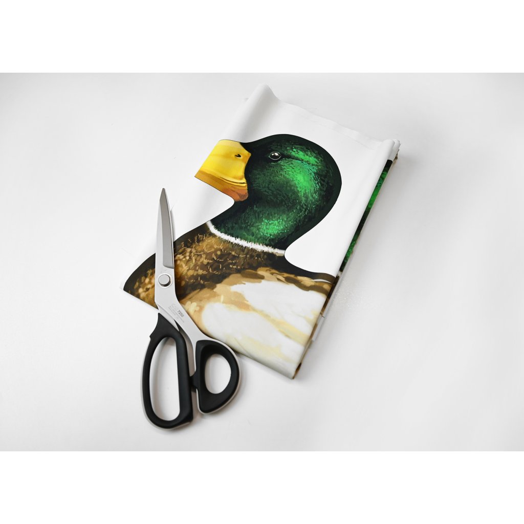 Parádní textilní panel o rozměru 150 x 80 cm s autorskou grafikou, ze kterého si můžete ušít tři originální textilní polštářky - kačera s kačenou divokou a kačenu domácí.